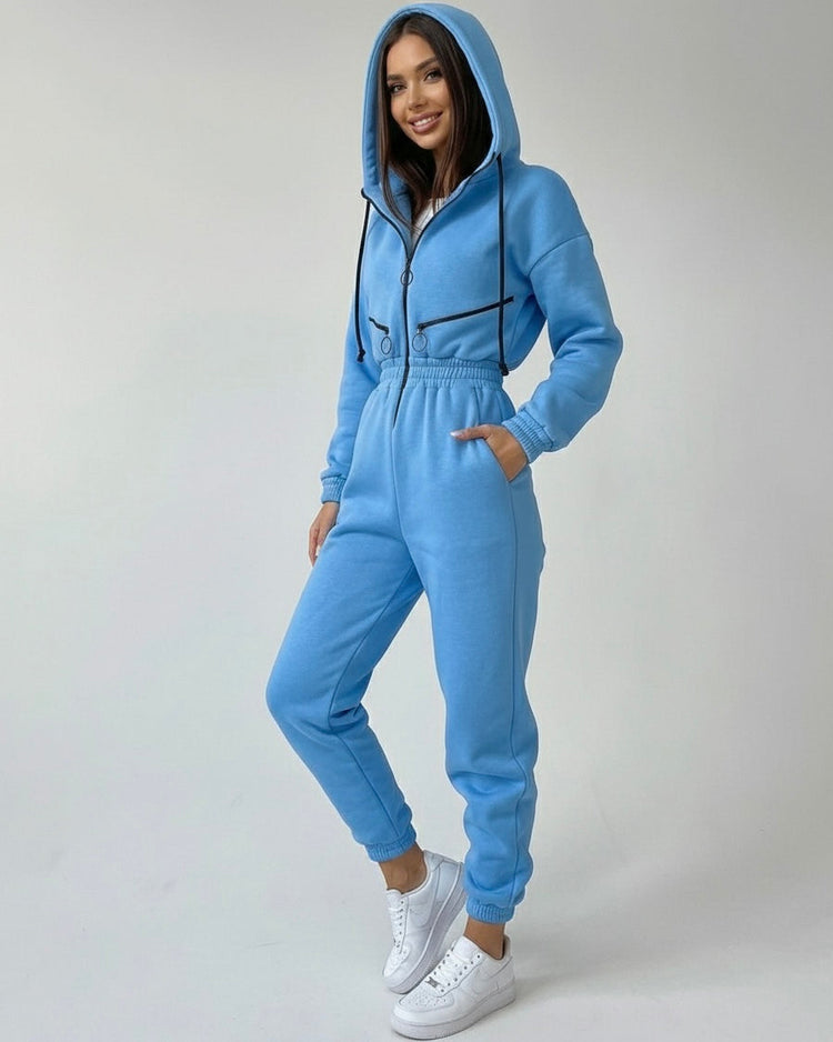 Rock the ultimate all-in-one vibe with this Stealth Wealth Hydro Zip-Up Hooded Jumpsuit. Crafted from a comfy 95% polyester and 5% spandex blend, this piece keeps you looking effortlessly cool while staying cozy. The drawstring hood, functional pockets, and front zipper give you total control over your fit and style. Whether you're running errands or making a statement, this jumpsuit is your new go-to. Machine wash cold and tumble dry low for easy care. Available in sizes S–XL with measurements to find your perfect fit.